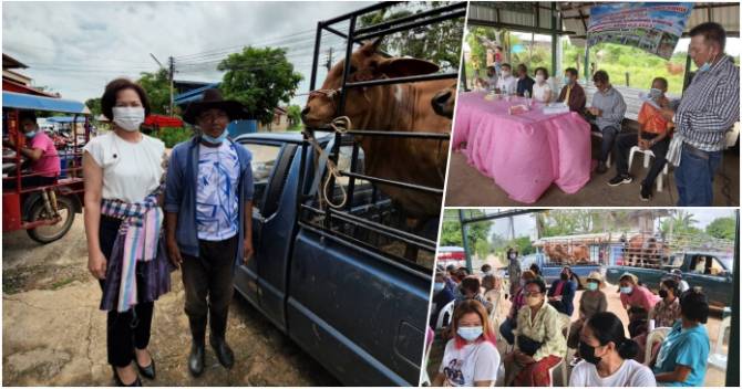 กลุ่มสมาชิกวิสาหกิจชุมชน ผู้เลี้ยงโค-กระบือ บ้านม่วง ขอนแก่น รับ-มอบลูกโค โครงการ(ธคก.)