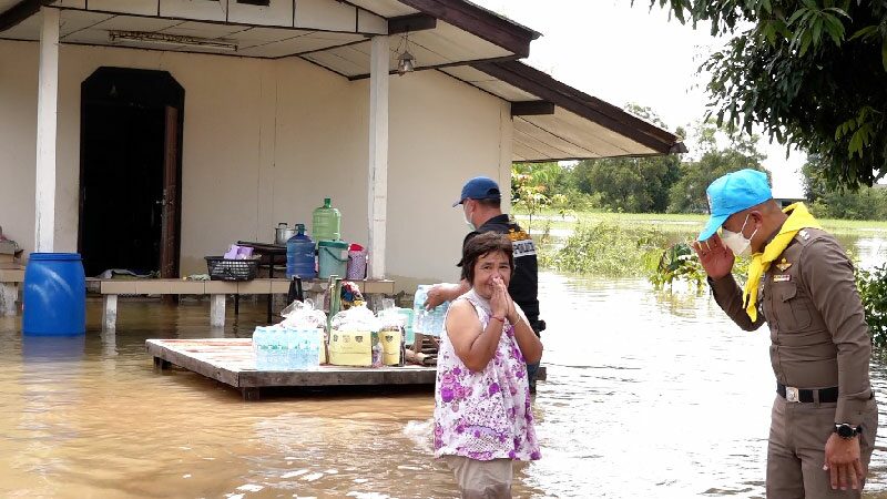 ขณะที่ พล.ต.ท.ยรรยง เวชโอสภ ผบช.ภ.4 มอบหมายให้ พ.ต.อ.ธนาวัตร ดีบุญมี ณ ชุมแพ รองผบก.ภ.จว.ขอนแก่น ในฐานะโฆษกตำรวจภูธรจังหวัดขอนแก่น ร่วมกับตำรวจจิตอาสา นำถุงยังชีพมามอบให้กับชาวบ้านภายในซอยหน้าเมือง 10 หรือชุมชนสหพัฒนา ม.14 ต.กุดเค้า อ.มัญจาคีรี ซึ่งน้ำยังคงท่วมขังบนถนน สูงประมาณ 1 เมตร ประชาชนในซอย ได้รับความเดือดร้อนไม่สามารถออกจากบ้านได้