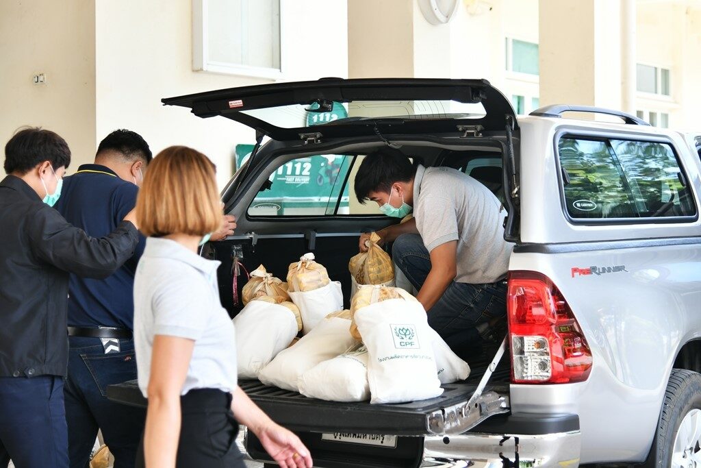 นายบรรจง สมสงวน รองกรรมการผู้จัดการ ธุรกิจอาหารสัตว์บกกิจการขายอาหารสัตว์ภาคอีสาน (บน) และ น.สพ.คุณวุฒิ เครือลอย รองกรรมการผู้จัดการ ธุรกิจสุกรภาคอีสานตอนบน นำชาวซีพี-ซีพีเอฟจิตอาสา จากธุรกิจสัตว์บกและธุรกิจสุกร ร่วมมอบ ณ ศูนย์บริหารราชการในสถานการณ์ฉุกเฉิน ศาลากลางจังหวัดขอนแก่น