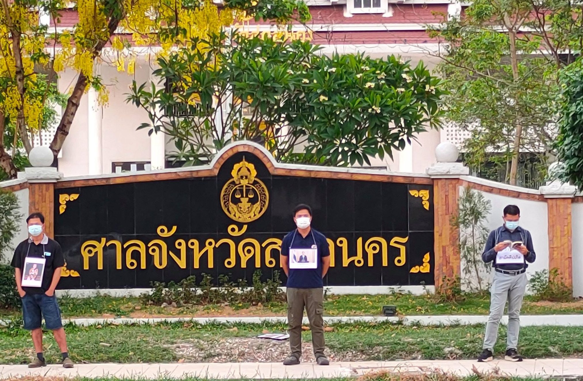 ยืนหยุดขัง 112 นาที สกลนคร “คณะก้าวหน้า สกลนคร” นัดหมายทำกิจกรรมยืนหยุดขัง บริเวณหน้าศาลจังหวัดสกลนคร เริ่ม 16.30 น. และสิ้นสุดกิจกรรม 18.22 น. ผู้สื่อข่าวรายงานว่า เบื้องต้นมีผู้เข้าร่วมกิจกรรม 7 คน มีเจ้าหน้าที่ตำรวจ และเจ้าหน้าที่กองอาสารักษาดินแดน (อส.) มาสังเกตการณ์ในบริเวณพื้นที่ทำกิจกรรม และบันทึกภาพการทำกิจกรรม