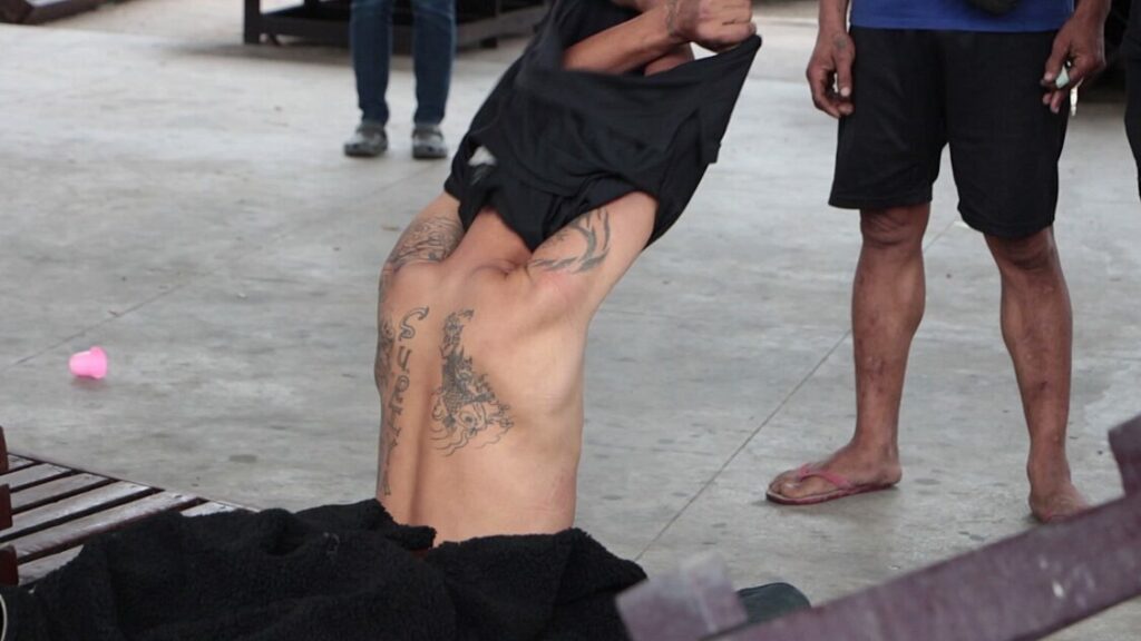 โดยในช่วงที่เจ้าหน้าที่ตำรวจเข้าควบคุมตัว ผู้ต้องหาและเพื่อน ที่เป็นคนเร่ร่อนเหมือนกัน กำลังพากันนอนหลับอยู่บนเก้าอี้รอรถโดยสาร ท่ามกลางอากาศหนาว เนื่องจากในเขตเมืองขอนแก่นมีฝนตก โดยเจ้าหน้าที่ตำรวจชุดสืบสวนได้ปลุกให้ผู้ต้องหาทั้ง 2 คน ลุกขึ้นมาในสภาพมึนเมาและพูดจาวกวน ก่อนจะแสดงตัวเป็นเจ้าหน้าที่ตำรวจ และขอให้ผู้ต้องหาถอดเสื้อออก กระทั่งพบลายสักที่อยู่บนแผ่นหลัง ซึ่งตรงกับภาพถ่ายตำหนิรูปพรรณของผู้ก่อเหตุที่พลเมืองดีถ่ายภาพเอาไว้ได้