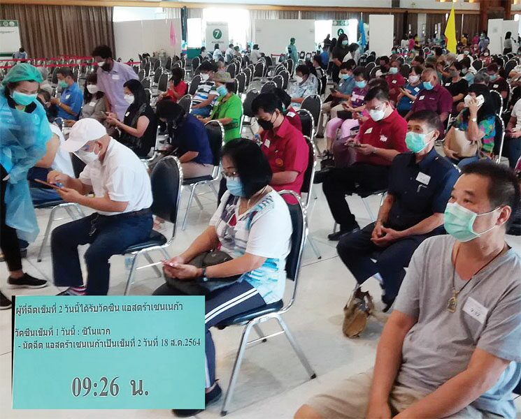 ฉีดไขว้ – ประชาชนจำนวนมากเข้ารับการฉีดวัคซีนป้องกันโควิด โดย เข็มแรกซิโนแวค และเข็มที่สองสลับเป็น แอสตร้าเซนเนก้า ที่หอประชุมศรีวชิรโชติ ม.ราชภัฏพิบูลสงคราม จ.พิษณุโลก เมื่อวันที่ 21 ก.ค.