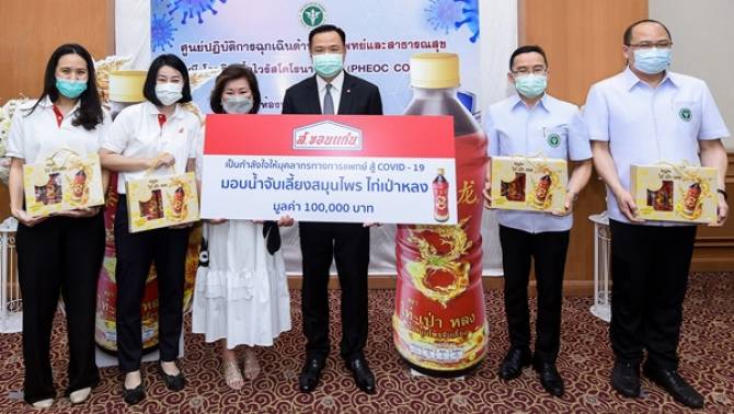 นางนิรมล รุจิราโสภณ รองประธานกรรมการบริหาร พร้อมด้วยทีมงาน บริษัท ส. ขอนแก่นฟู้ดส์ จำกัด (มหาชน) หรือ SORKON ร่วมส่งมอบผลิตภัณฑ์เครื่องดื่