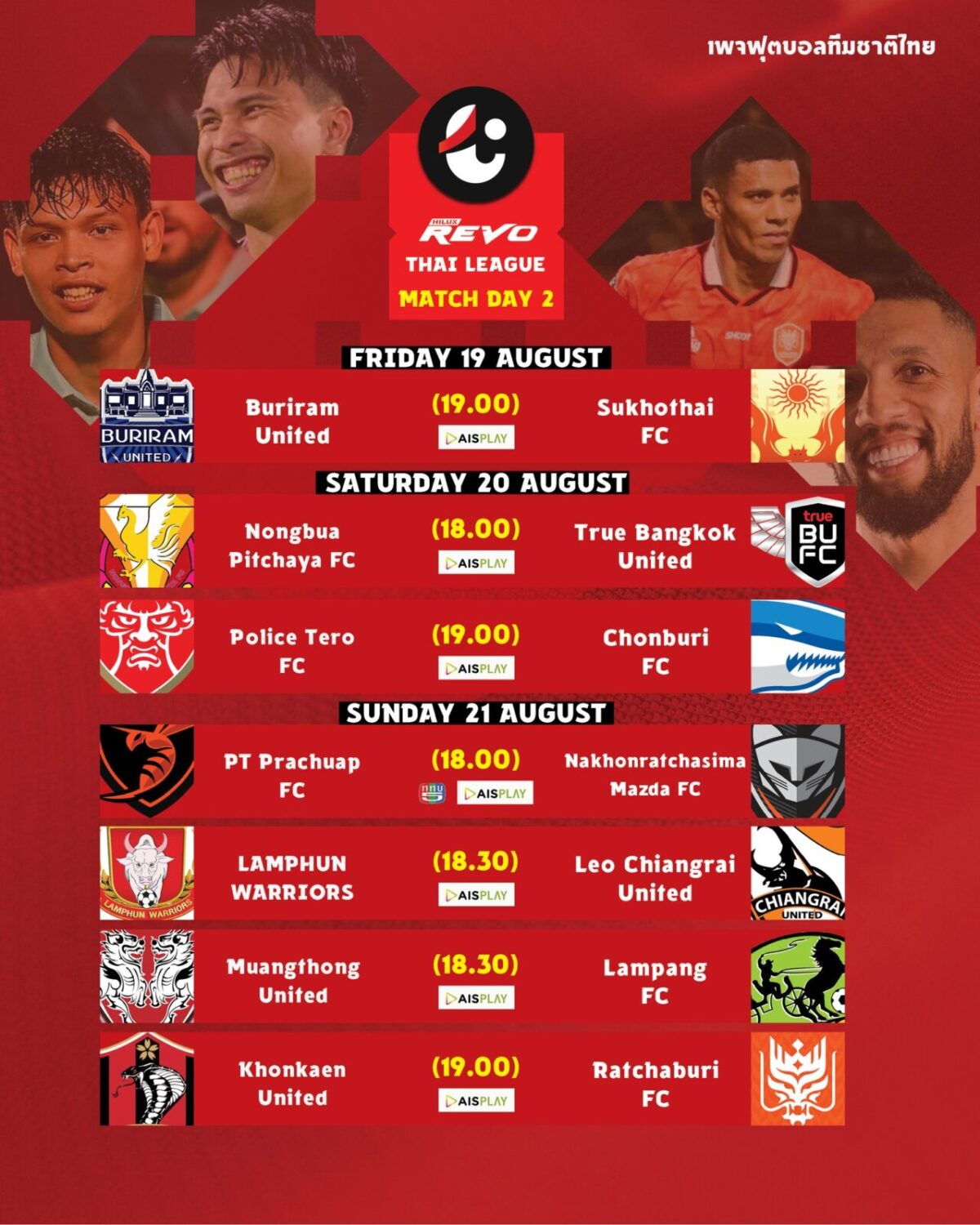 โปรแกรม รีโว่ ไทยลีก ฤดูกาล 2022/23 สัปดาห์ที่ 2 มีดังนี้
