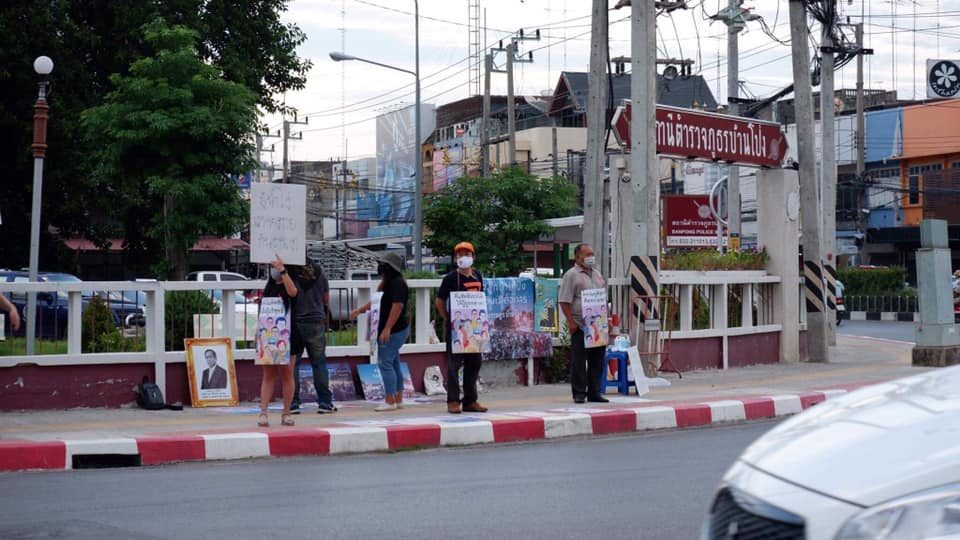 เวลา 17.00 น. ที่ หน้าสถานีตำรวจภูธรบ้านโป่ง จังหวัดราชบุรี นักกิจกรรม กลุ่มลูกบ้านโป่งไม่อินเผด็จการ จำนวน 5 คน ยืนเว้นระยะห่าง 1.12 ชั่วโมง จากนั้น จุดเทียนไว้บนภาพแกนนำ เพื่อไว้อาลัยให้กับกระบวนการยุติธรรม ท่ามกลางประชาชนที่สัญจรไปมา