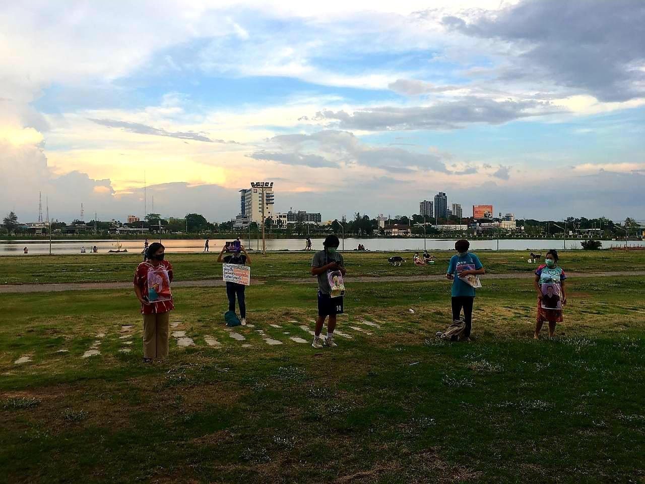 เวลา 17.00 น. ราษฎร โขง ชี มูล นักศึกษามหาวิทยาลัยขอนแก่นและประชาชน ร่วมกิจกรรม ยืนกระจายตัว ยืนบริเวณรอบบึง เพื่อเรียกร้องปล่อยตัวเพื่อน พร้อมถือป้ายภาพ และข้อความเพื่อแสดงออกเชิงสัญลักษณ์ เรียกร้องให้ประกันตัวผู้ต้องหา โดยในวันนี้ทางกลุ่มได้มีการนำภาพแกนนำที่ถูกคุมขัง เป็นสแตนดี้ อาทิ นายพริษฐ์ ชิวารักษ์, นายจตุภัทร บุญภัทร์รักษา เป็นต้น มาตั้งที่ด้านข้างผู้ยืนร่วมกิจกรรม