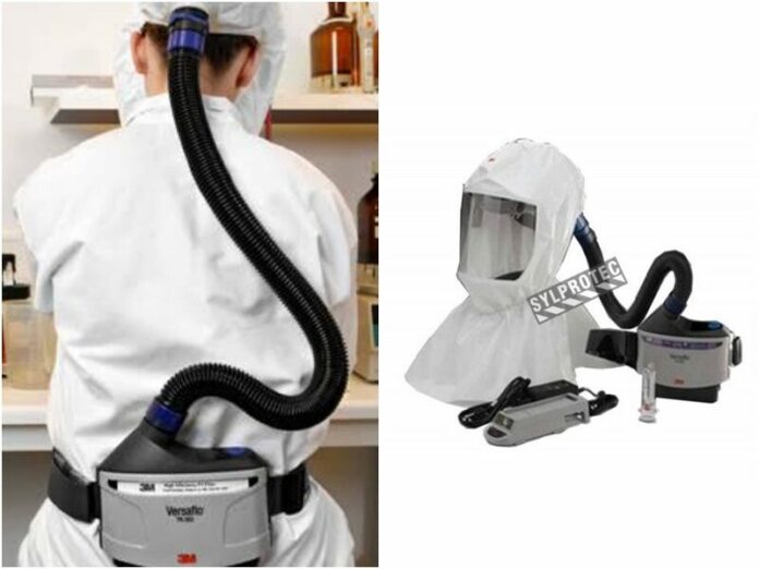สำหรับ PAPR ย่อมาจาก Power Air Purifying Respiratory เป็นอุปกรณ์ชุดพัดลมกรองอนุภาคระดับสูงที่จะต่อเข้ากับชุดคลุมศีรษะ เมื่อเปิดสวิตช์ที่พัดลม ตัวพัดลมก็จะทำการดูดอากาศผ่านตัวกรองแล้วส่งอากาศมาที่ชุดคลุมศีรษะ
